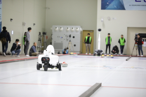 고려대는 과학기술정보통신부(장관 유영민, 이하 ‘과기정통부’) 정보통신방송기술개발사업의 지원을 받아 세계 최초의 인공지능 컬링로봇 경기 시연회를 3월 8일(목) 오후 2시 30분, 대한장애인체육회 이천훈련원 컬링센터(경기도 이천)에서 개최했다. 이번 시연회에서는 인공지능 컬링로봇인 ‘컬리(Curly)’와 강원도 고등부팀(춘천기계공고)이 컬링규칙을 적용하여 2엔드 경기를 진행했다.