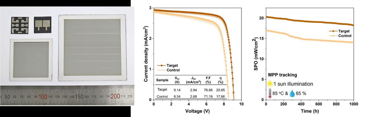 연구 결과, 기존 슬롯다이 코팅 방식에서 발생했던 전하 재결합 문제를 줄여 더 높은 효율을 구현했으며, 개질된 정공 수송층을 적용한 태양전지가 고온·고습 환경에서도 장기간 성능이 유지됐다.